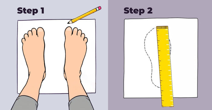 Step 1: Place a sheet of paper against a wall and stand on it with your heel touching the wall. Draw the outline of your foot.